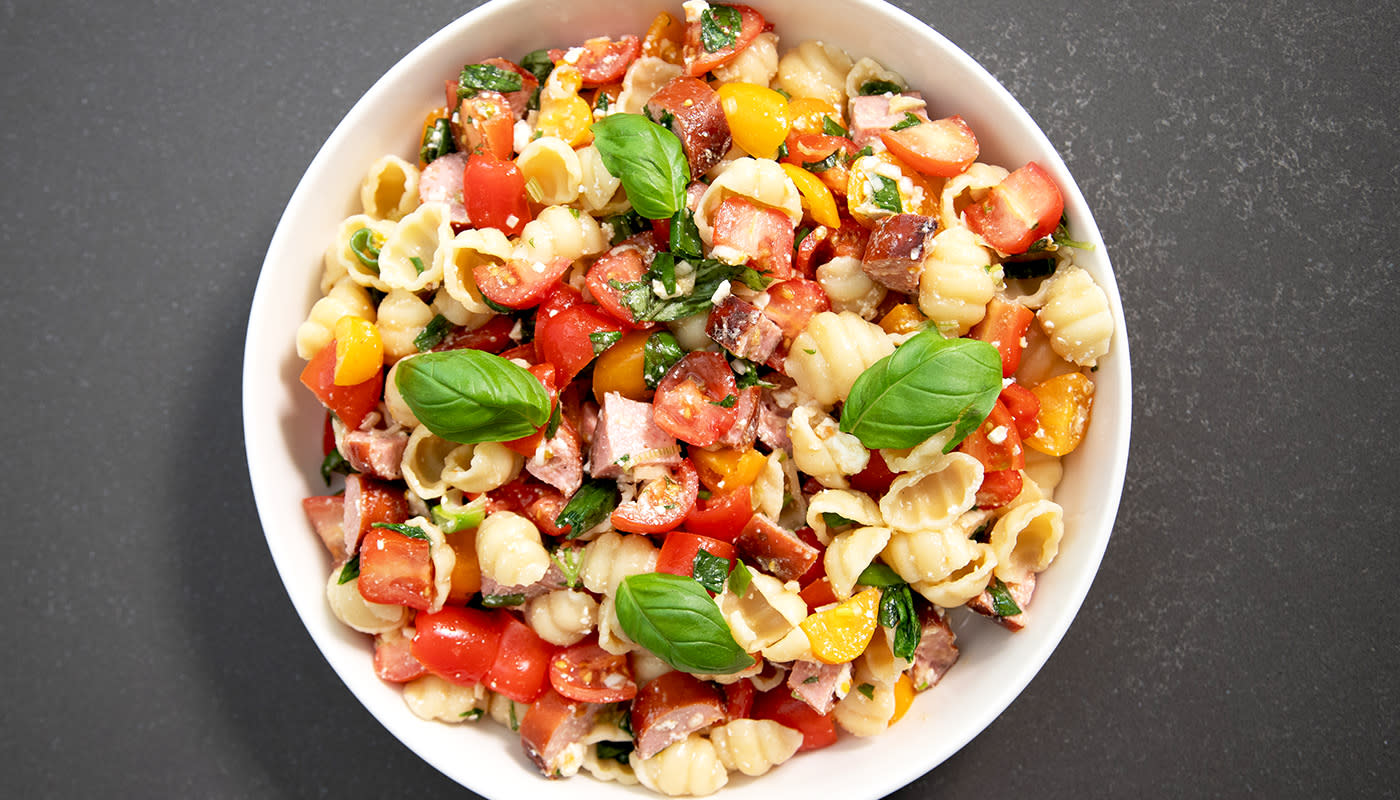 Pastasalaatti grillimakkaralla