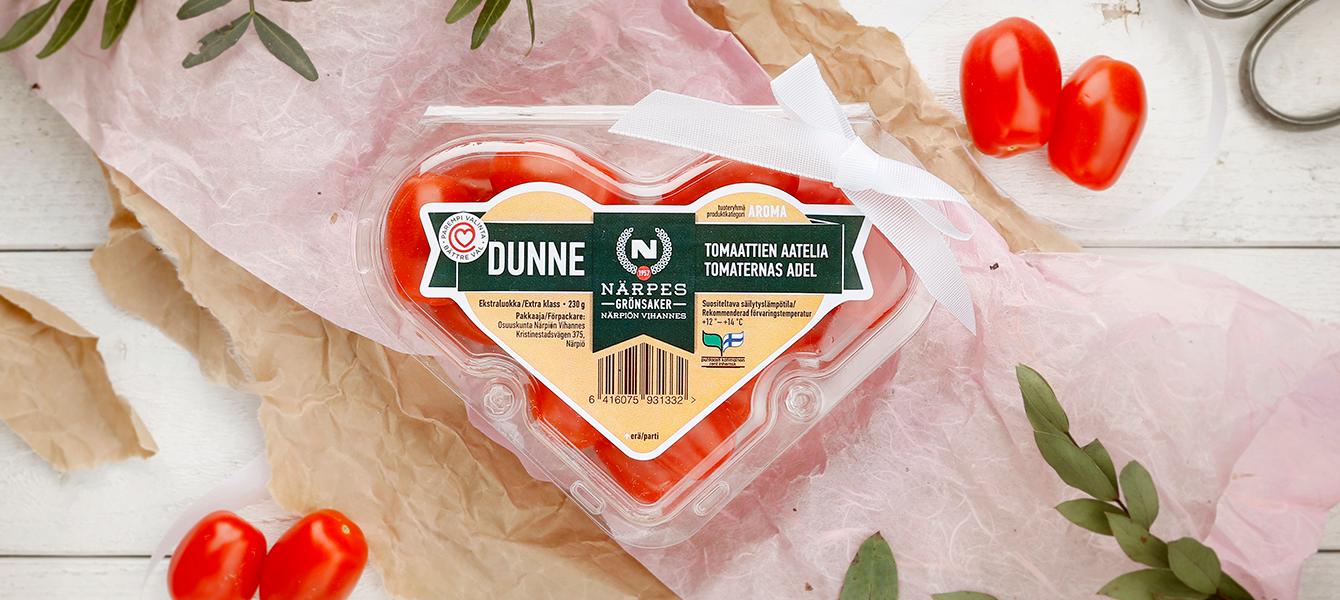 - Myyntierä:Dunne-tomaatti on saatavina 230 g sydänrasioissa ja 600 g perhepakkauksissa.